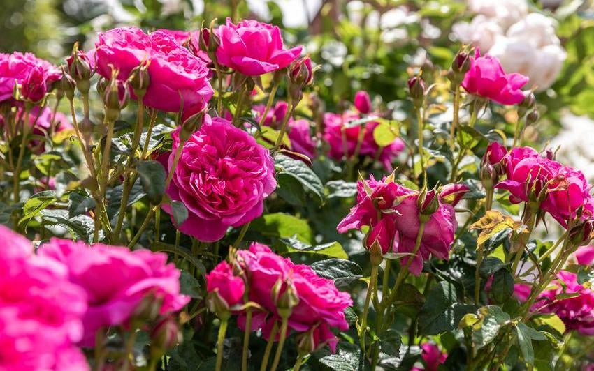 For Sarah, roses in pots are the ultimate flexible accessory. "It really is simple; anyone can do it!" she exclaims after potting cherry-pink James L. Austin. Using a mix of John Innes No. 3 and multi-purpose compost, Sarah creates a "sensational" look that moves as the garden evolves.