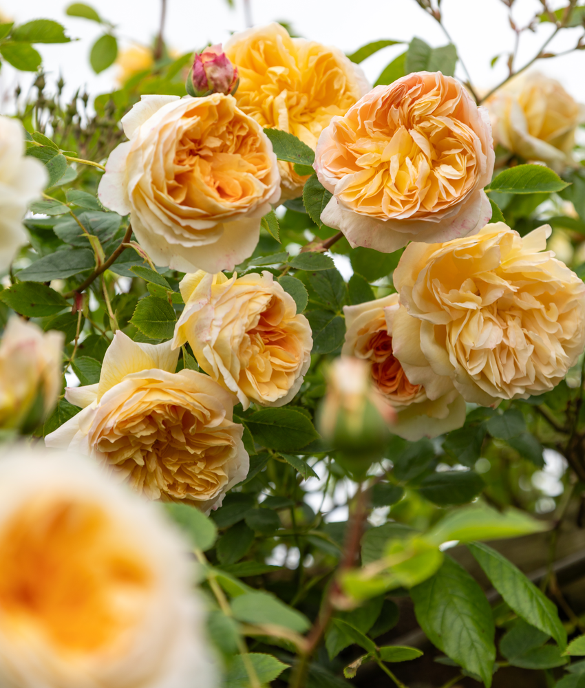 The rose's medium Tea fragrance, with hints of spiced apples and cloves, adds an aromatic layer to its charm. Known for its exceptional health and disease resistance, The Lady of Shalott® blooms repeatedly throughout the season, creating a captivating display of colour and scent from early summer to the first frosts.