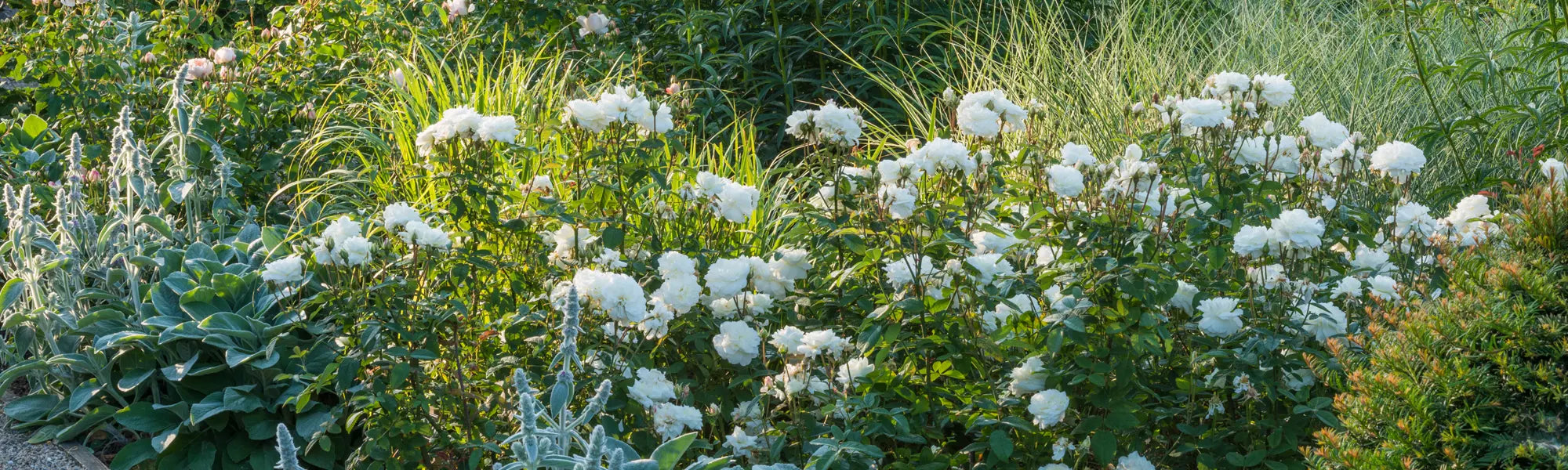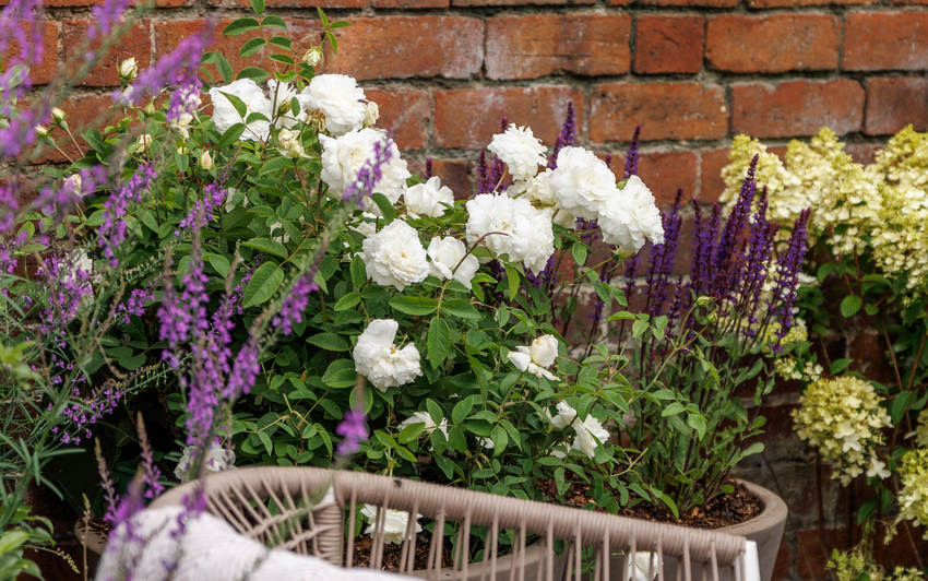 This rose will work well in a mixed border. Use varying silver and green tones of foliage to accompany her pointed white blooms for a tranquil look. Alternatively, plant her in a pot for a lovely centre-piece.