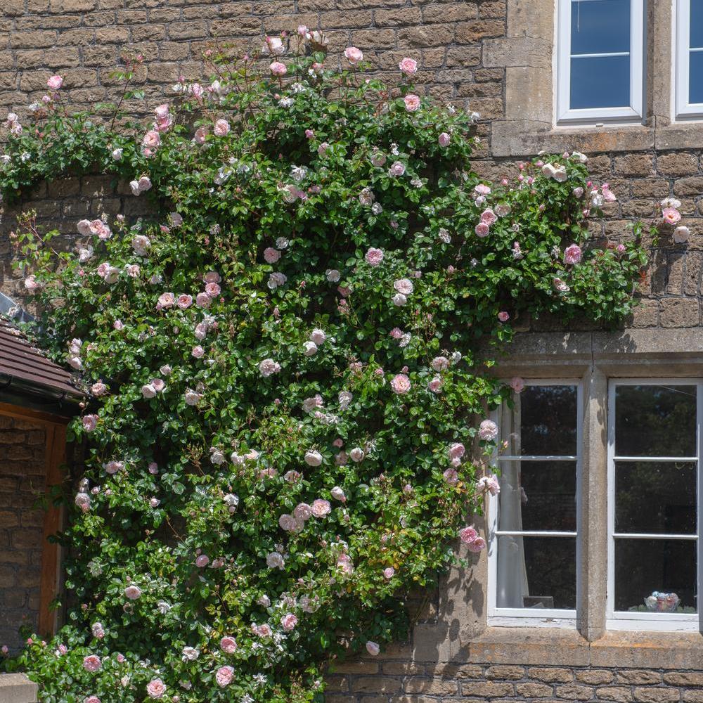 Climbing roses are a perfect way to introduce height and elegance to your garden. The Generous Gardener® (Ausdrawn) is a great choice for trellises, fences, or walls. “It’s perfect for decorating pergolas, fences, or walls, and its gentle fragrance and pollinator-friendly blooms bring an extra dimension to your space,” Pollyanna explains.