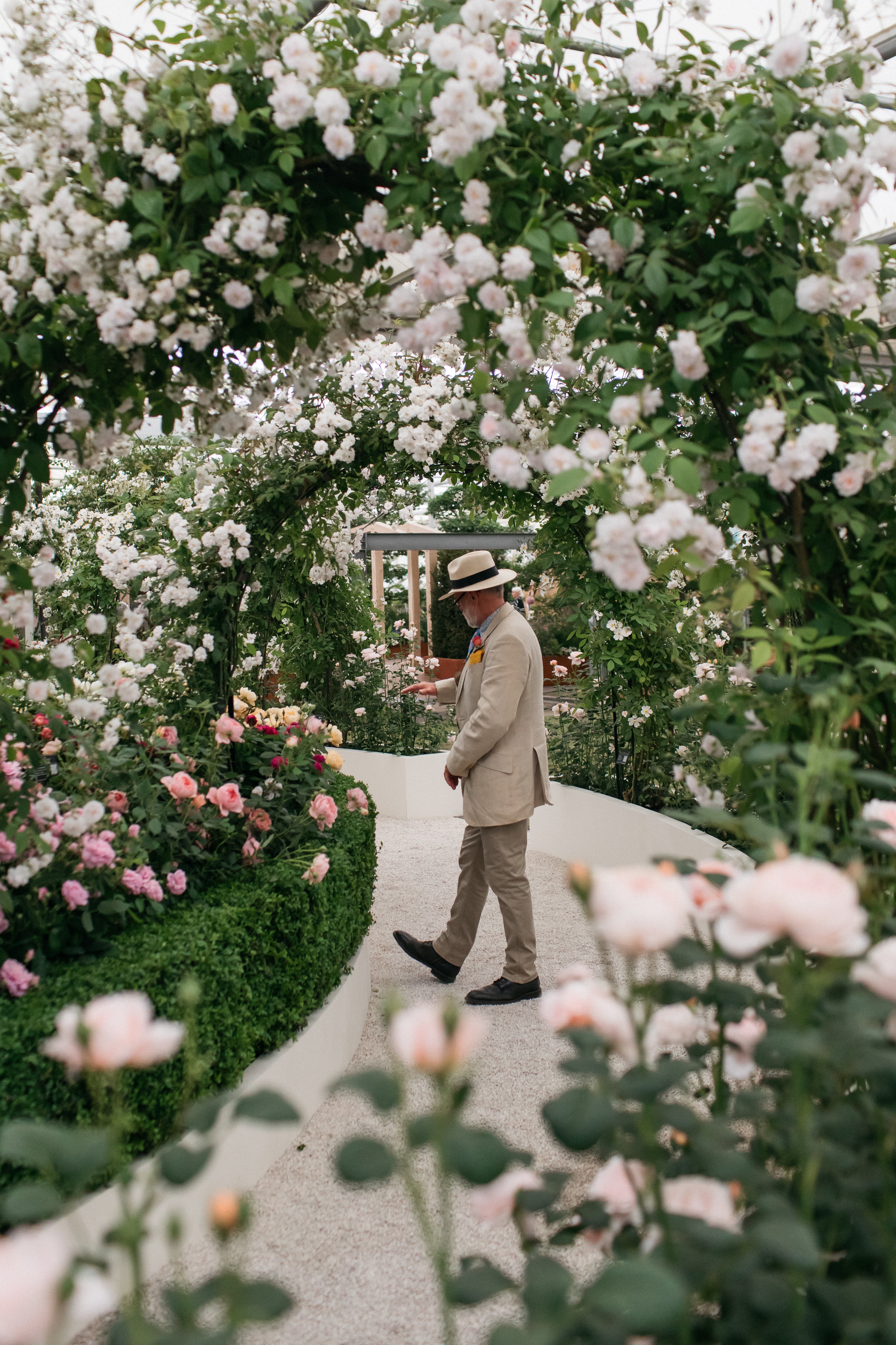 Though this garden was created for Chelsea, many of the ideas behind it can be brought into your own space. Layering different rose types - shrubs, climbers, ramblers and standards - adds richness and depth. Mixing bold colours with soft ones, upright growth with tumbling forms, brings a sense of movement and story. Adding structure, like hedging or vertical elements, helps shape that story and guide the eye.