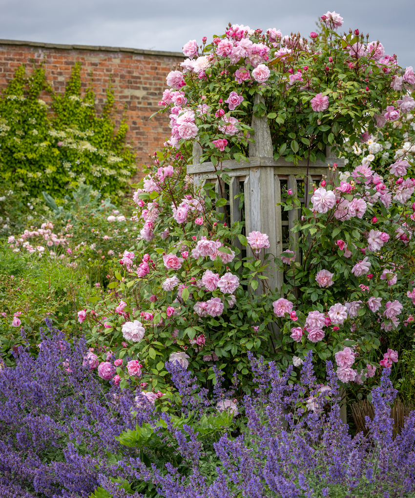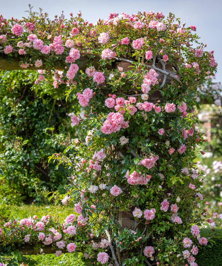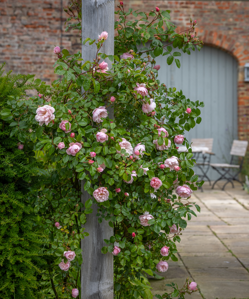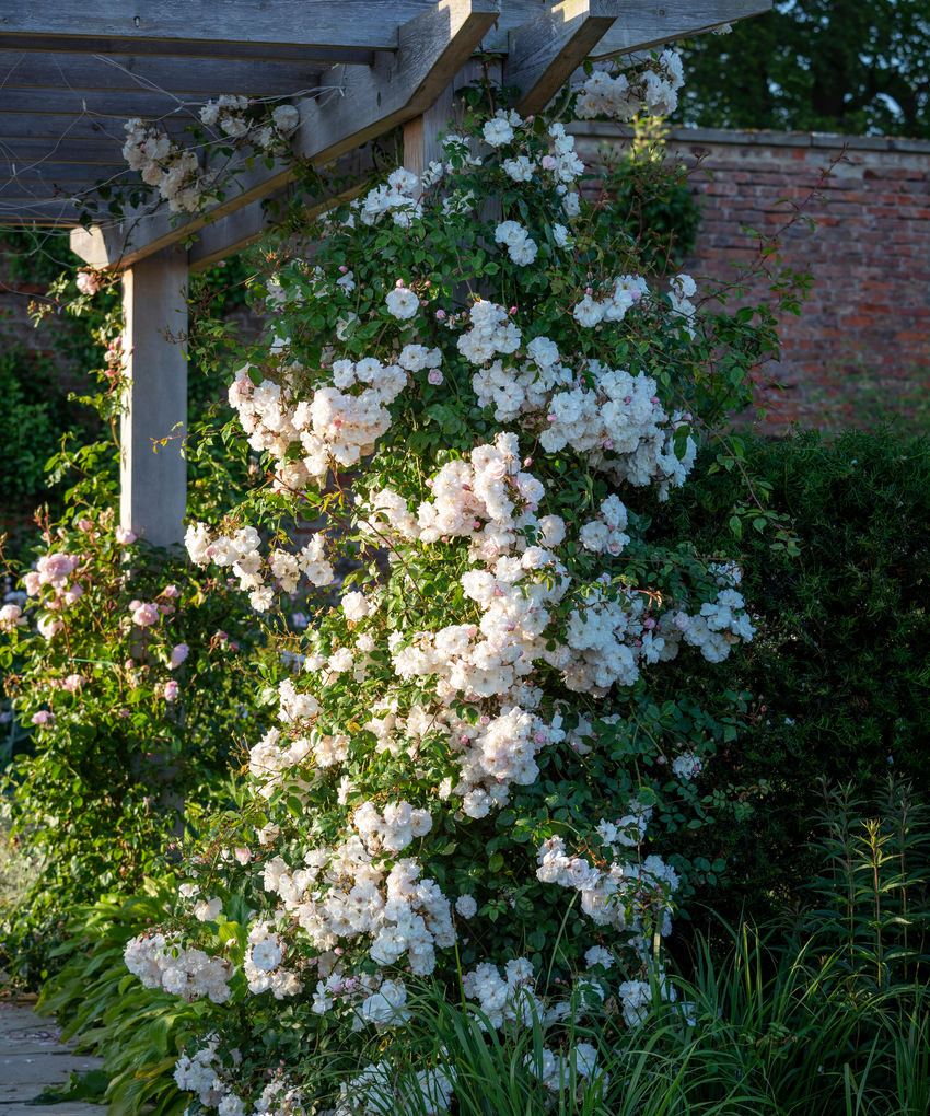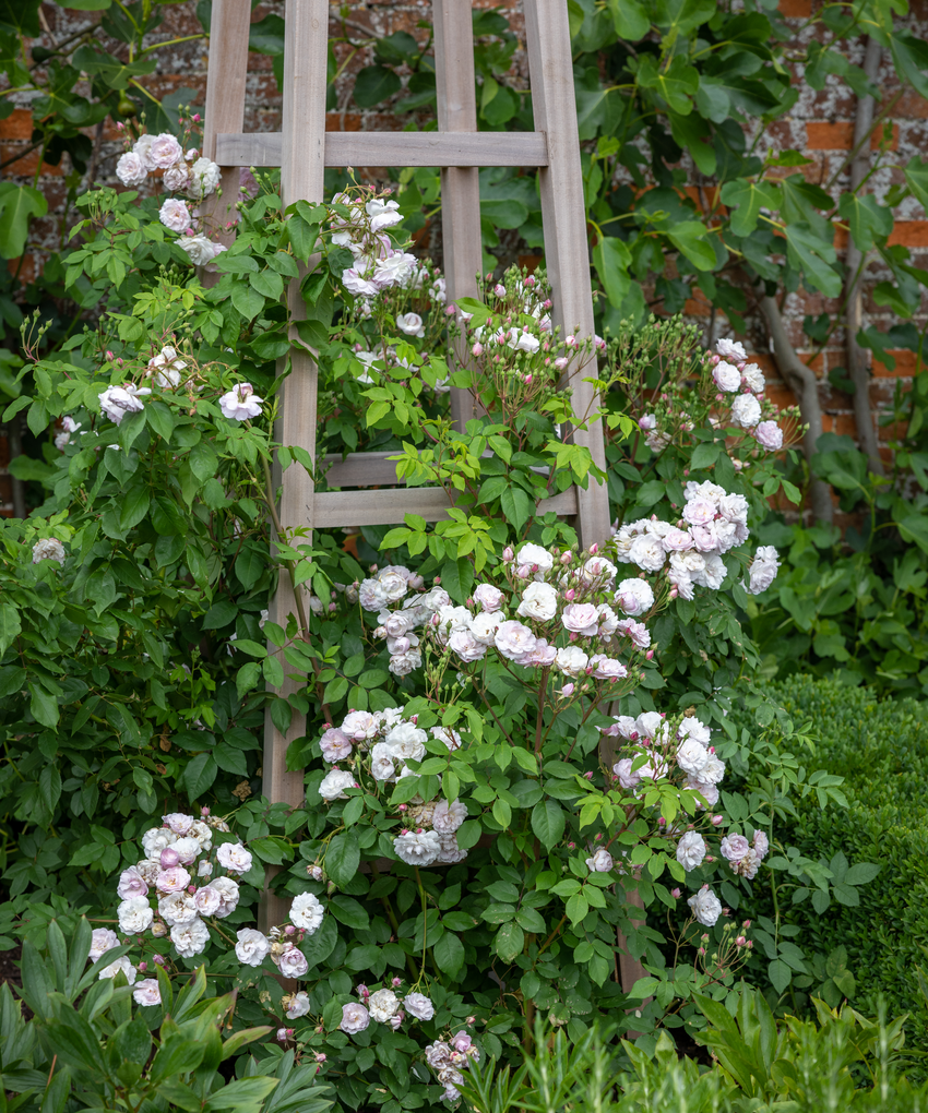 Pergolas and arches require larger ramblers and climbers than obelisks, which generally only need roses of between 6ft to 8ft. Repeat flowering varieties are an ideal choice for blooms throughout the summer, however once-flowering ramblers can also be used, perhaps planted alongside a late-flowering clematis to prolong the blooming season.