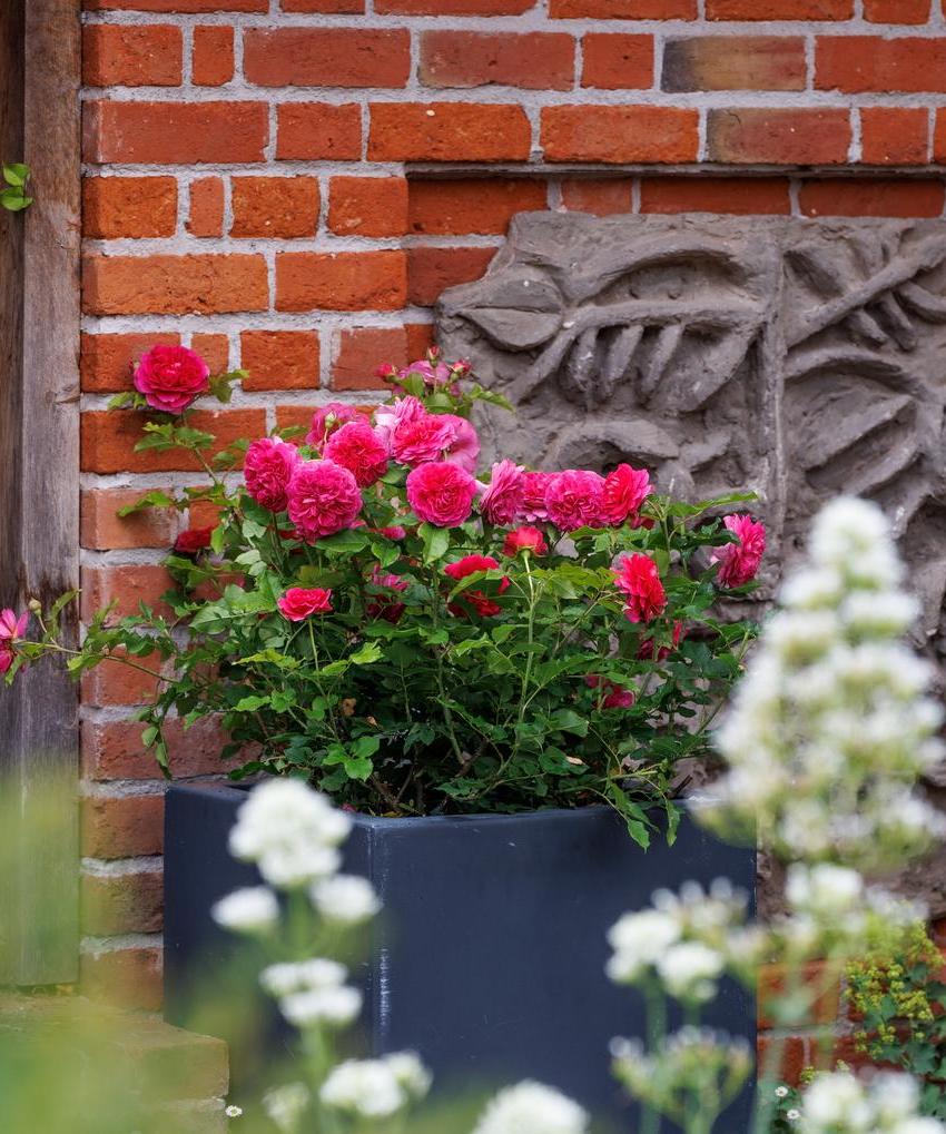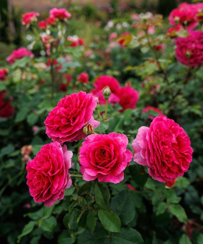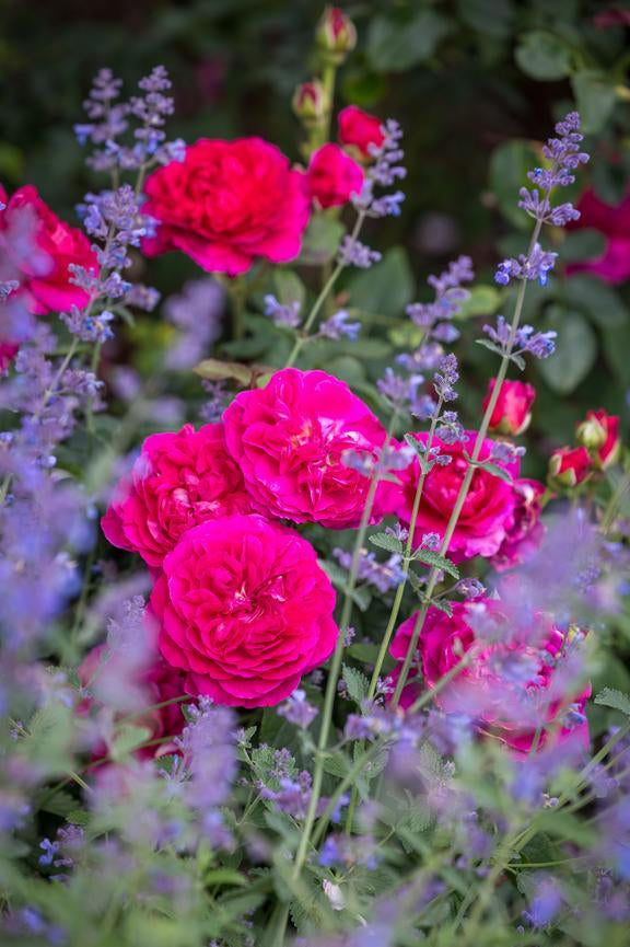Enhance your mixed borders with the Gabriel Oak® rose, known for its captivating, rich, deep pink hues and luscious foliage that will breathe life into your garden beds. For a harmonious look, combine Gabriel Oak® with complementary perennials like lavender. With its silvery foliage and elegant purple flowers, lavender beautifully complements the rose's blossoms. You can also add ornamental fountain grass for added texture and fluidity. At the same time, evergreen shrubs can provide a year-round verdant backdrop. Gabriel Oak® repeat flowers, ensuring your garden stays vibrant and interesting throughout the flowering season.