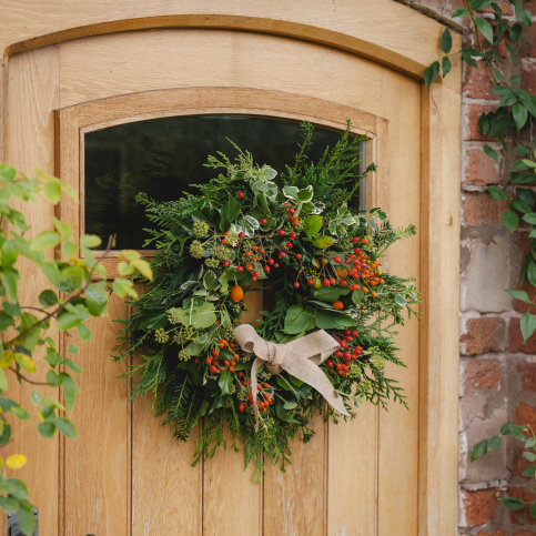 Rose hips add a delightful touch of colour and charm to any Christmas wreath. With their rich shades ranging from deep red to bright orange, they bring a warm, festive glow to your decorations. Beyond their beauty, rose hips evoke the timeless elegance of traditional English gardens, making them perfect for a wreath that captures the true spirit of Christmas.