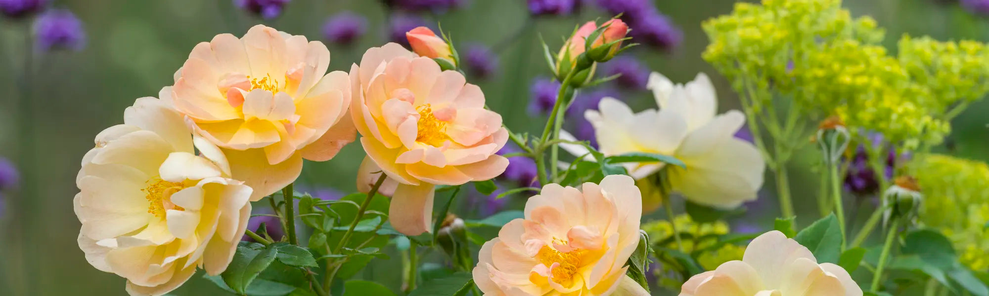 The Lark Ascending’s semi-double apricot blooms showcase a golden cluster of stamens at the centre, and its tall, airy growth made it the perfect addition of English roses to the garden.