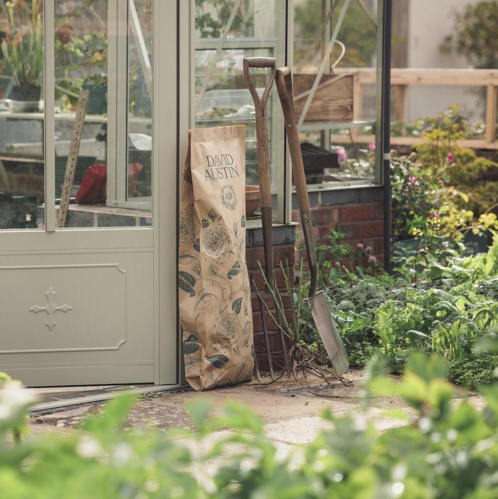 Bare root roses play a significant role in our BLOOM commitment to sustainability. By eliminating the need for heavy pots and soil, we reduce transportation emissions and packaging waste, making them a more environmentally responsible choice. Our mail order packaging also reflects this commitment—the bare roots arrive in a recyclable paper bag, and the internal "plastic" bag is made from potato starch, fully aligning with our goal of 100% recyclable packaging. Additionally, we have successfully eliminated black plastics, further enhancing our efforts to minimise environmental impact.